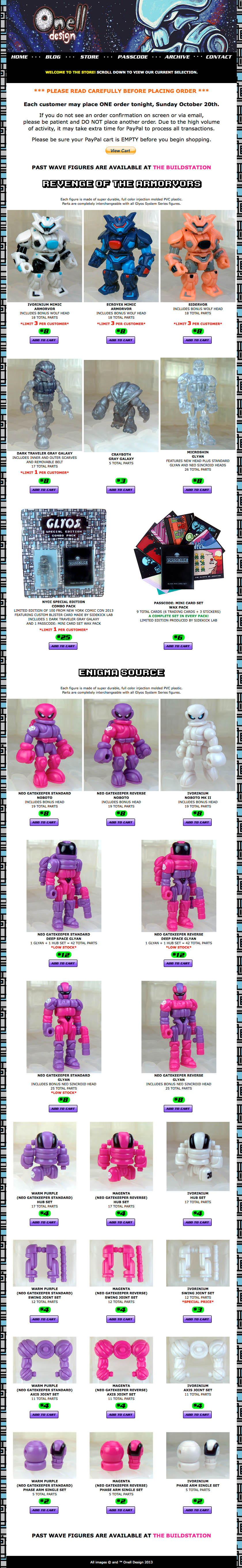 Here you go! Click here to see the October 20 2013 Onell Design drop menu.