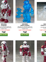 The upgrade of Pheyden, known as Skeleden, was originally shown as a Skeleton Warriors Kickstarter exclusive. Well, it turns out we won't have to wait - you can get them right now if they didn't sell out. Standard, clear blue Nemica, and a clear colorless upgrade pack can all be yours right now as long as they didn't sell through. Click here to see the February 22 2015 Onell Design drop menu.